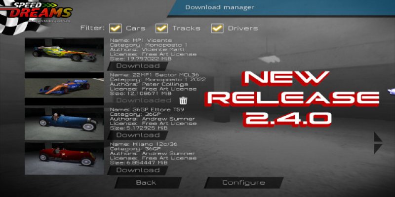 We are truly excited to announce the latest release for Speed Dreams, 2.4.2! 🎉 This is a hotfix release aimed to fix several bugs that were found after releasing 2.4.1, as well as minor improvements like these: